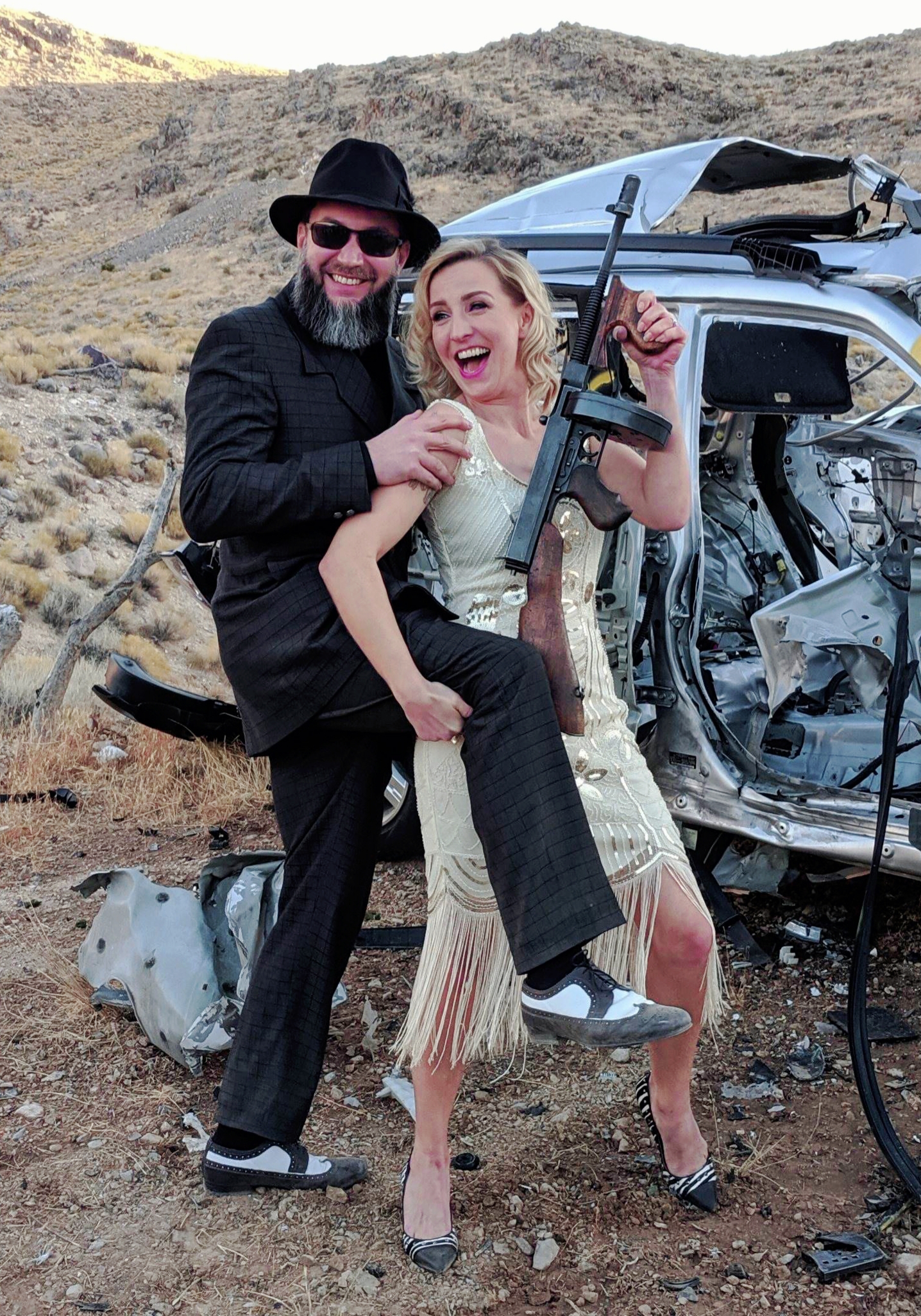 The couple pictured below took their vows, then each sat down behind a Sniper rifle and simultaneously pulled the trigger to BLOW UP A CAR!! They even took a part of the car home and hung it on their wall. We can offer officiants from Elvis to various other rock stars, to just a regular officiant. You are welcome to bring your officiant as well.